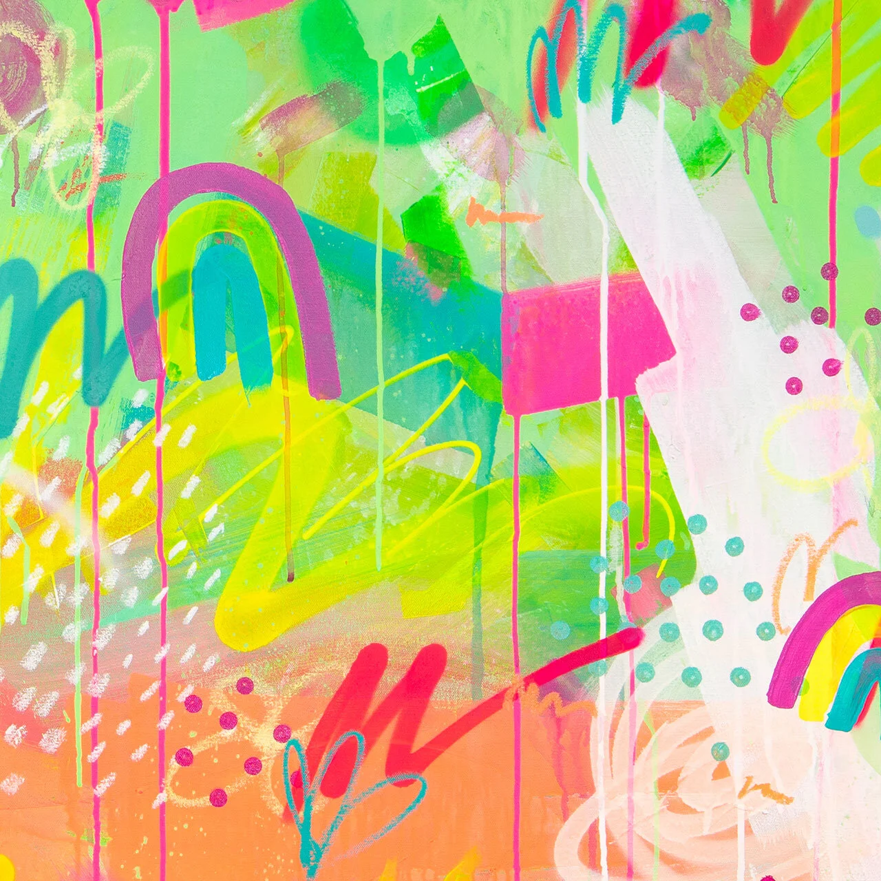 "Neon Lights" is a vibrant and dynamic mixed-media painting that showcases Jasper's innovative use of diverse materials, including acrylic paint, spray paint, paint sticks, colored pencils, graphite, markers, airbrush, and virtually anything he can get his hands on. The piece is richly layered with texture and color, capturing the essence of bustling urban landscapes that have deeply influenced his artistic journey.
